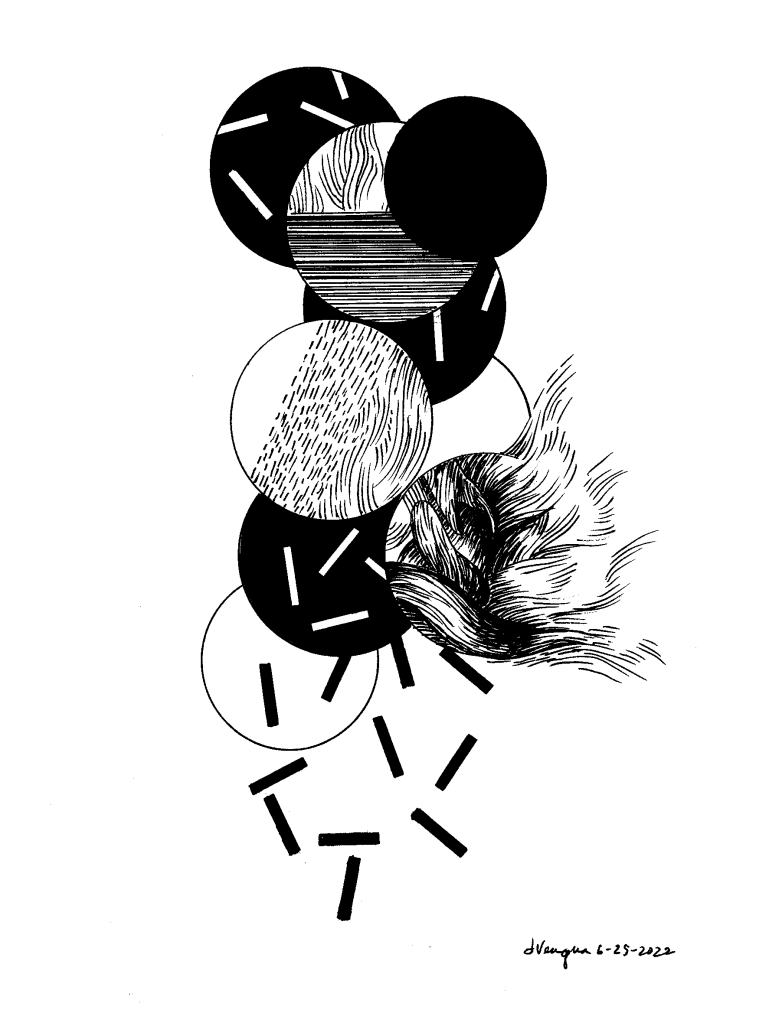 “Between the Lines,” acrylics, collage, and pencil on paper.“Black Moon,” ink on handmade paper. SOLD.“Remnants.” Collage and acrylics on wood panel. 9/2018. By Jean Vengua.