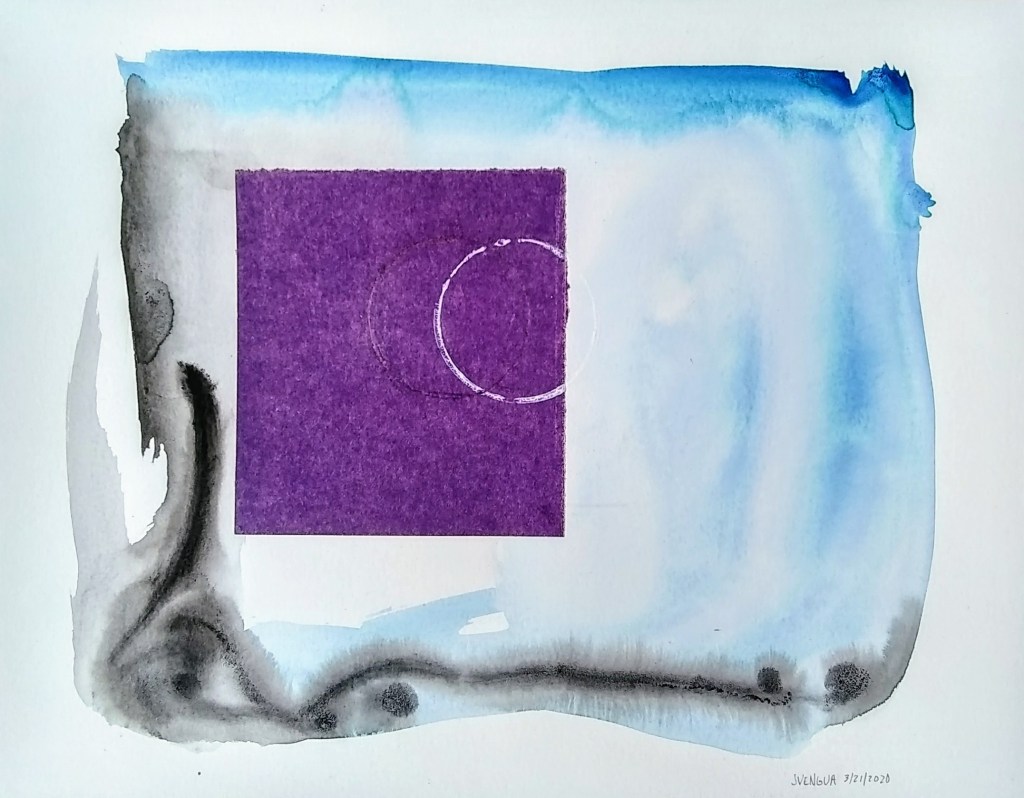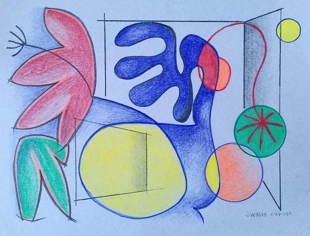 “Perianth.” Collage, paper, and pencil on paper.“Pandemic Garden.” Colored pencil and cold wax medium on heavy paper, 18×18 in. By Jean Vengua.