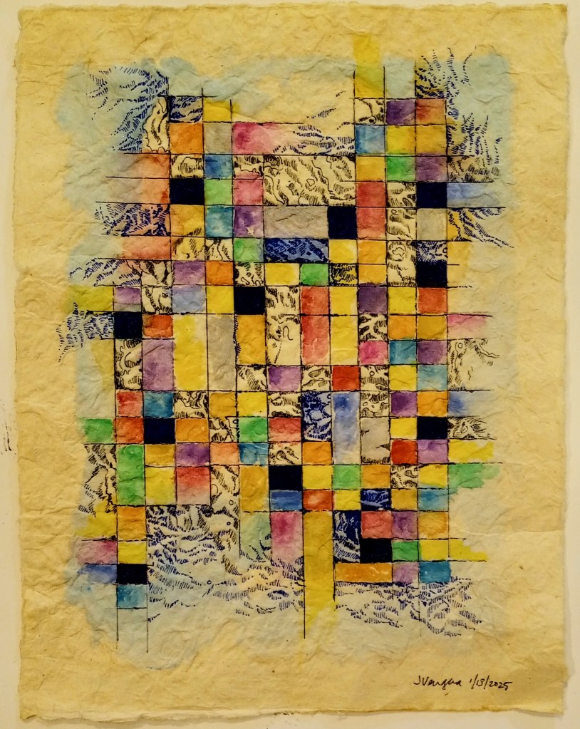 “Puzzle of the Day” Posted byJVJanuary 13, 2025Posted inDrawings Ink and watercolor on handmade Lokta paper, 8 x 11 in. Share this: Click to share on X (Opens in new window) X Click to share on Facebook (Opens in new window) Facebook Like Loading... Related Published by JV Multimedia artist, writer, experimental poet, non-profit schlepper. View more posts